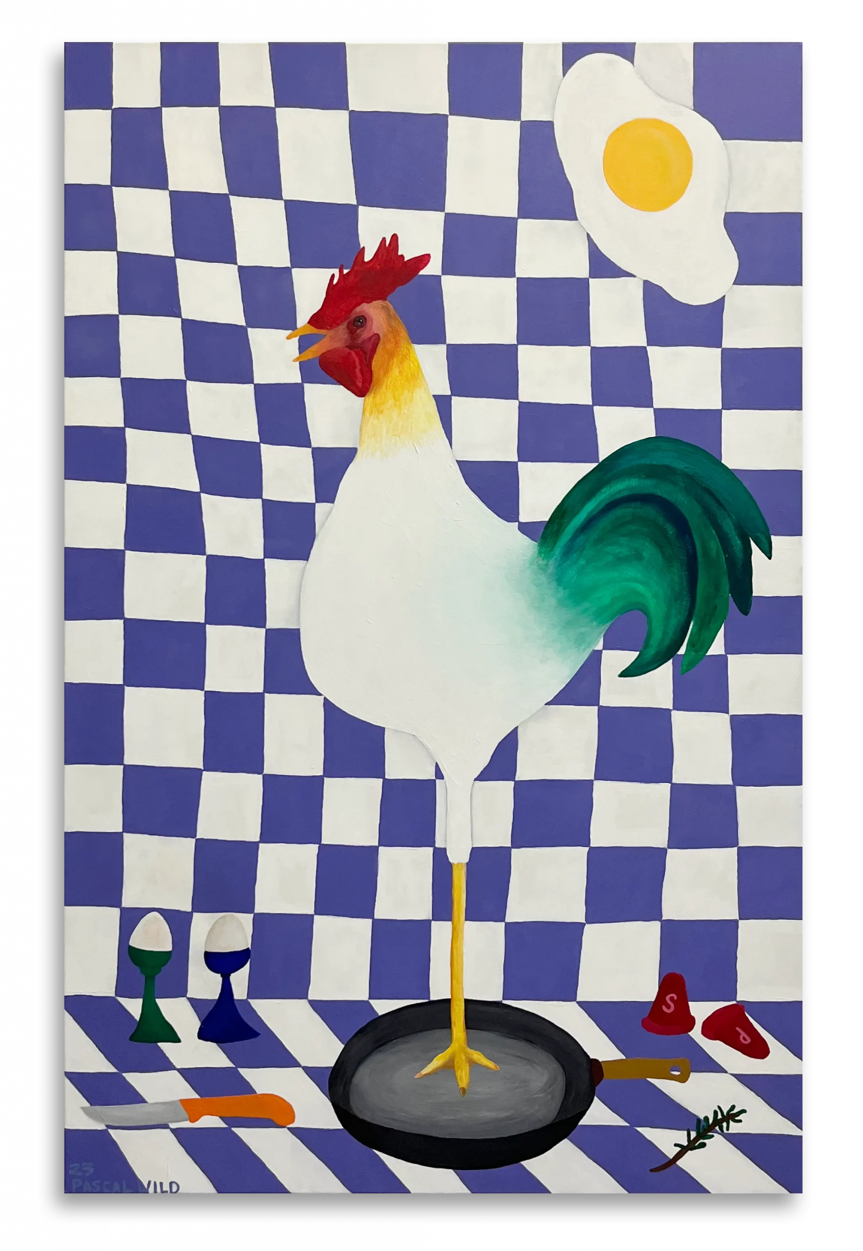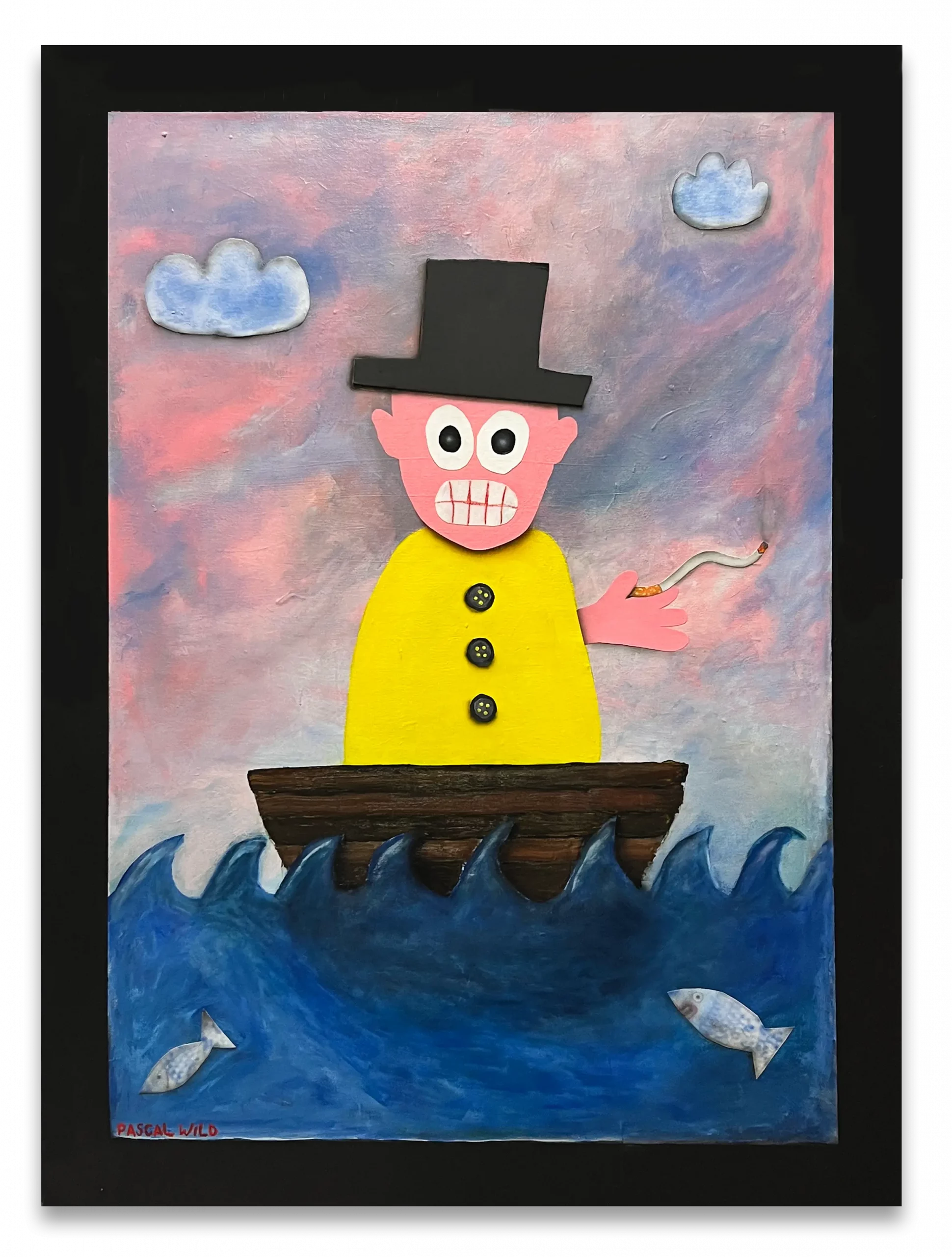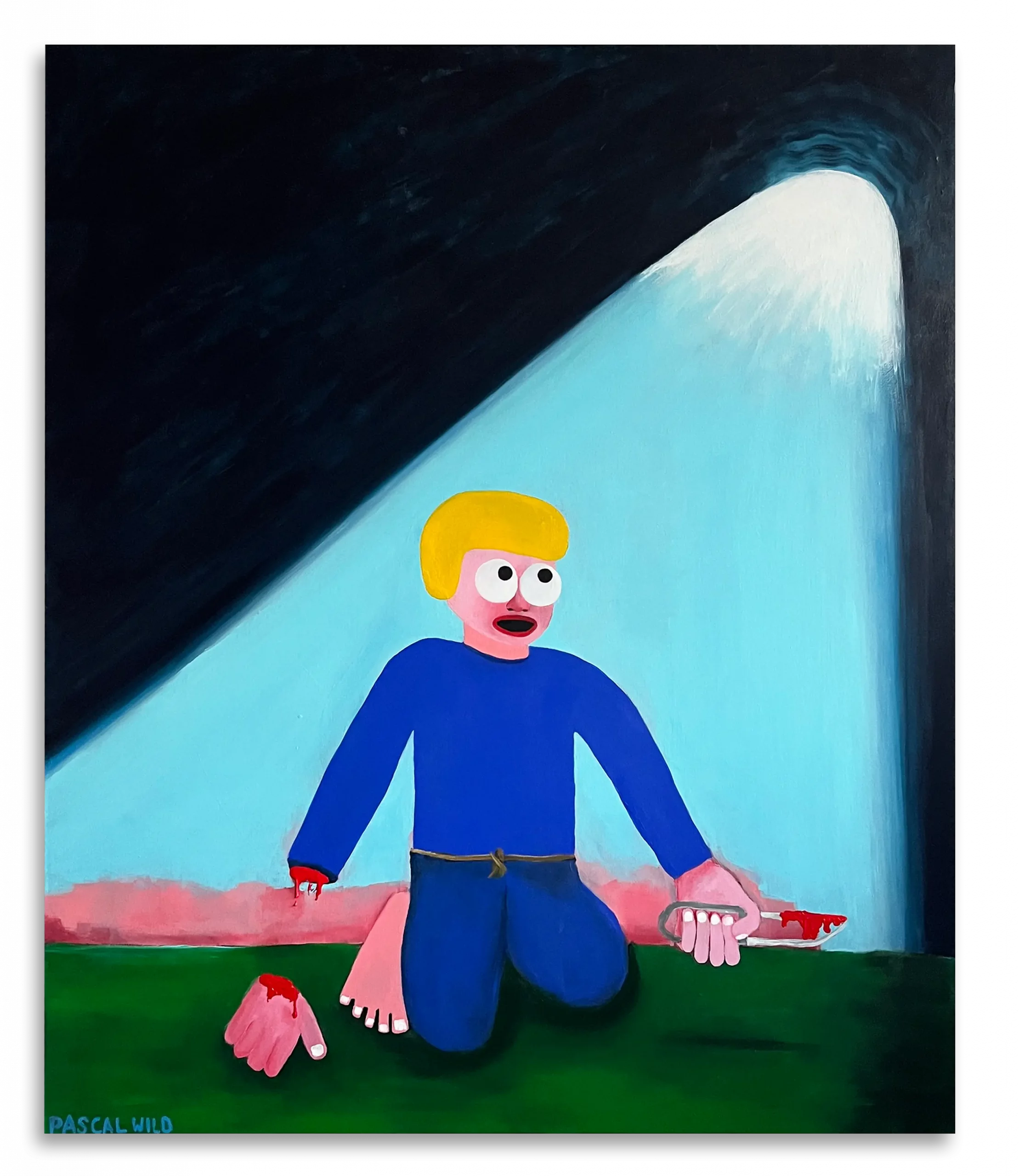 Wild’s paintings navigate the intersection of Pop Art, Street Art, and archetypal symbolism, translating collective and personal narratives into a deliberately naïve yet emotionally charged aesthetic. Through colour and distortion, he explores the fragility, absurdity, and yearning that define the human condition.